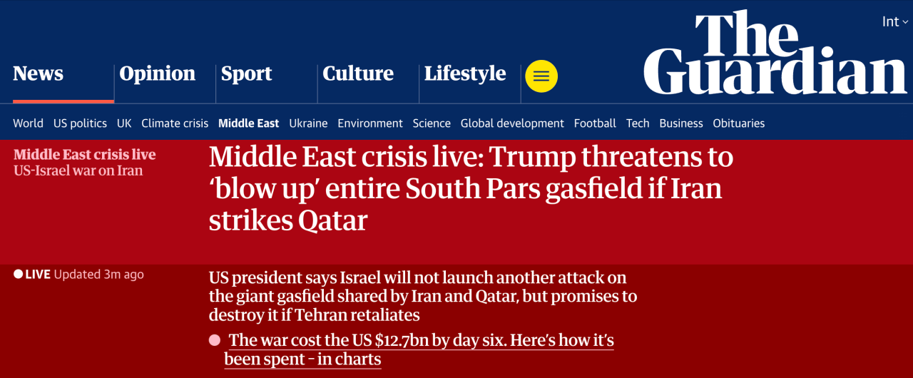 트럼프, 이란이 카타르 공격할 경우 사우스파(South Pars) 가스전 전체를 '폭파'하겠다고 협박