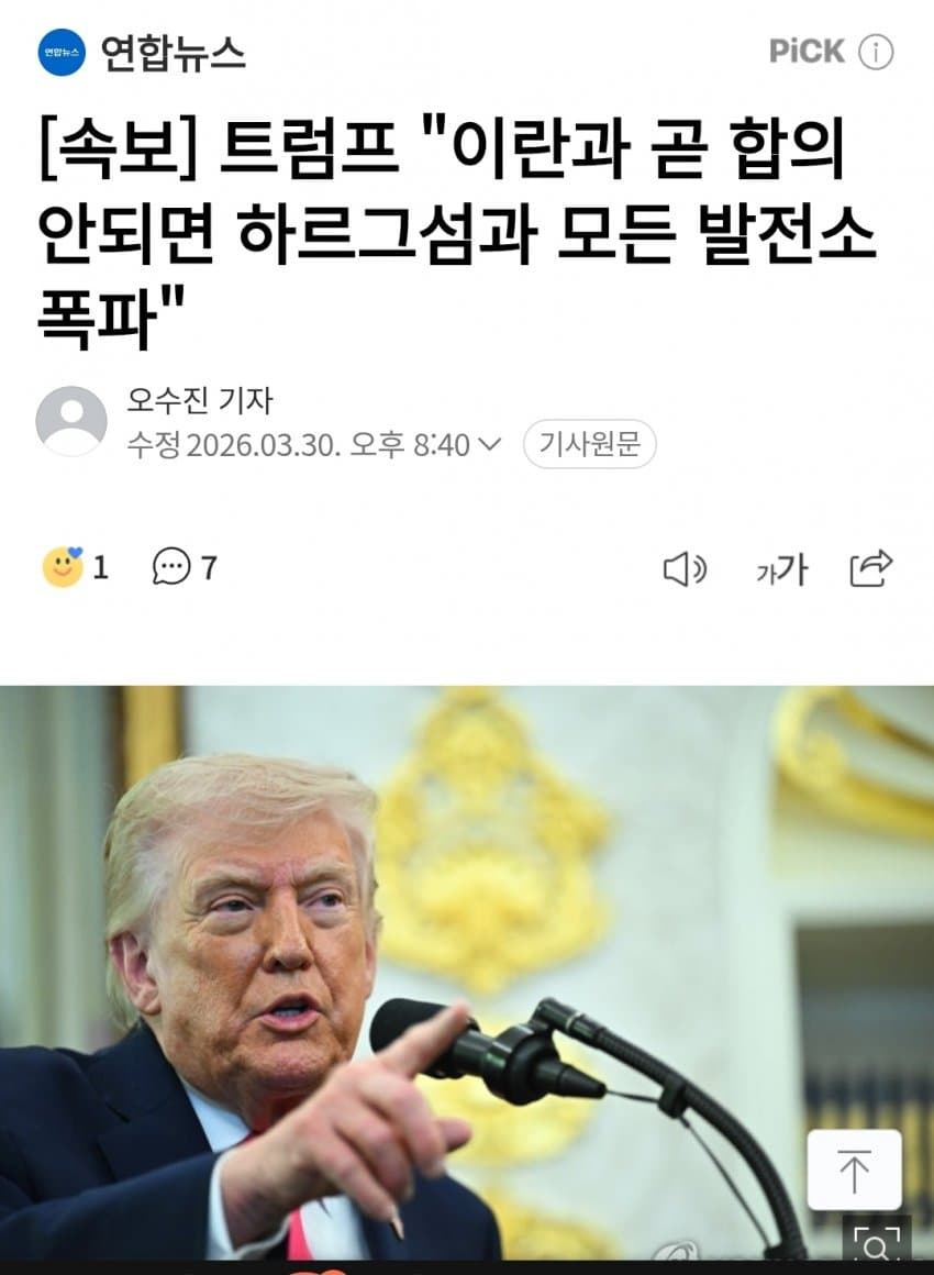[속보]트럼프, "합의 안하면 하르그섬 폭파할 것"