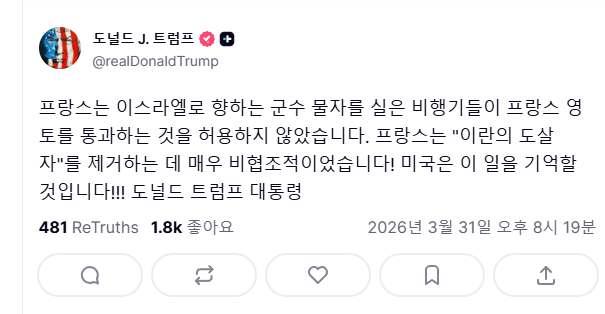 | 트럼프, 스페인 이탈리아 영국 프랑스를 블랙리스트로 선정[11] | 2시간전 | 45 | |