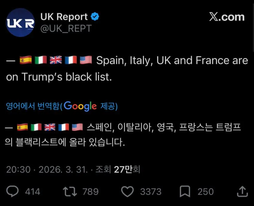 | (속보) 트럼프, 석유 필요하면 니들이 가서 가져와라.[11] | 2시간전 | 42 | |
