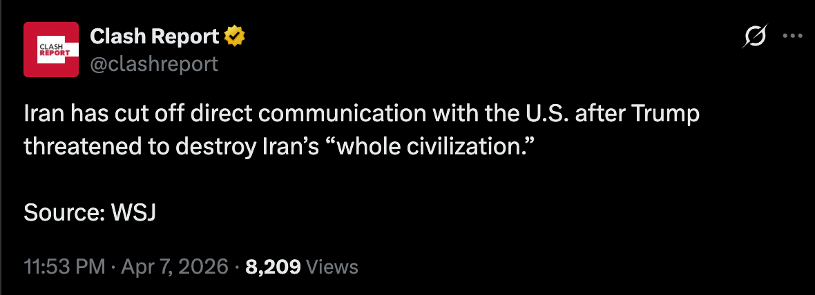 트럼프 대통령이 이란의 "문명 전체"를 파괴하겠다고 위협한 직후,