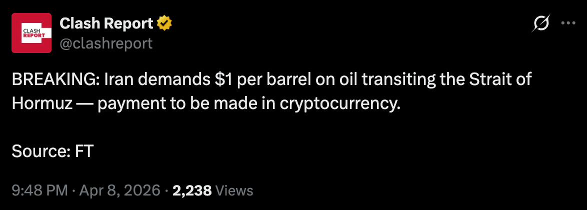 이란이 호르무즈 해협을 통과하는 원유에 대해 배럴당 1달러의 수수료를 요구했습니다.