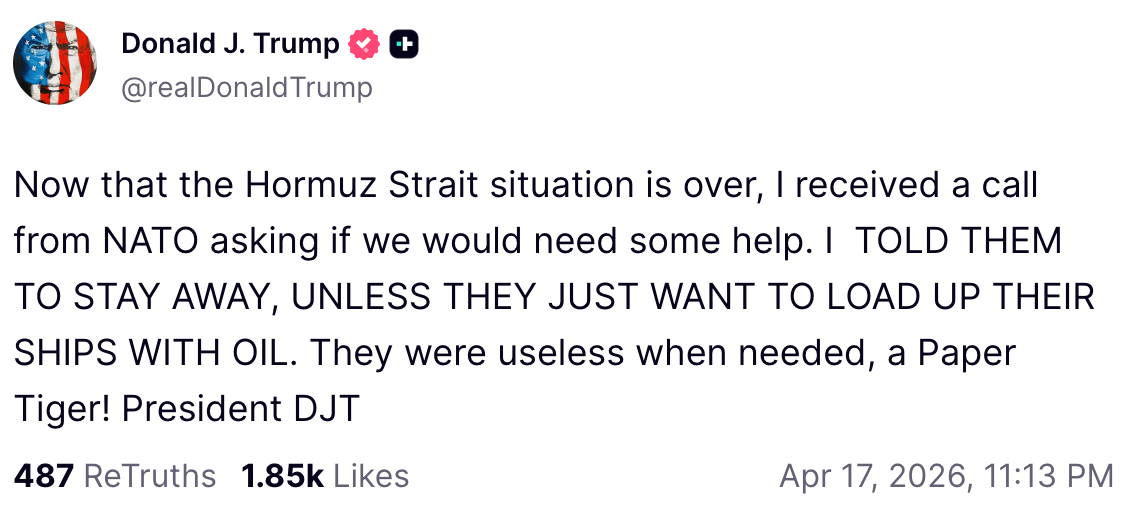 호르무즈 해협 상황이 정리되자마자 나토(NATO)에서 도움이 필요한지 묻는 전화가 왔습니다.