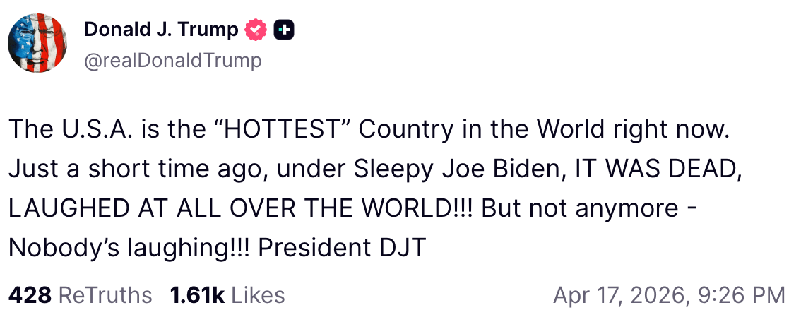 [속보]트럼프, "미국, 가장 핫한 나라"