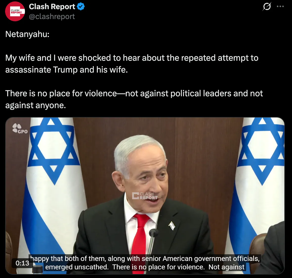 [속보]네타냐후, "트럼프 무사해서 다행"