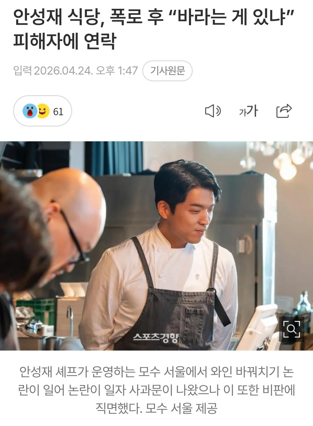 안성재 식당, 폭로 후 “바라는 게 있냐” 피해자에 연락