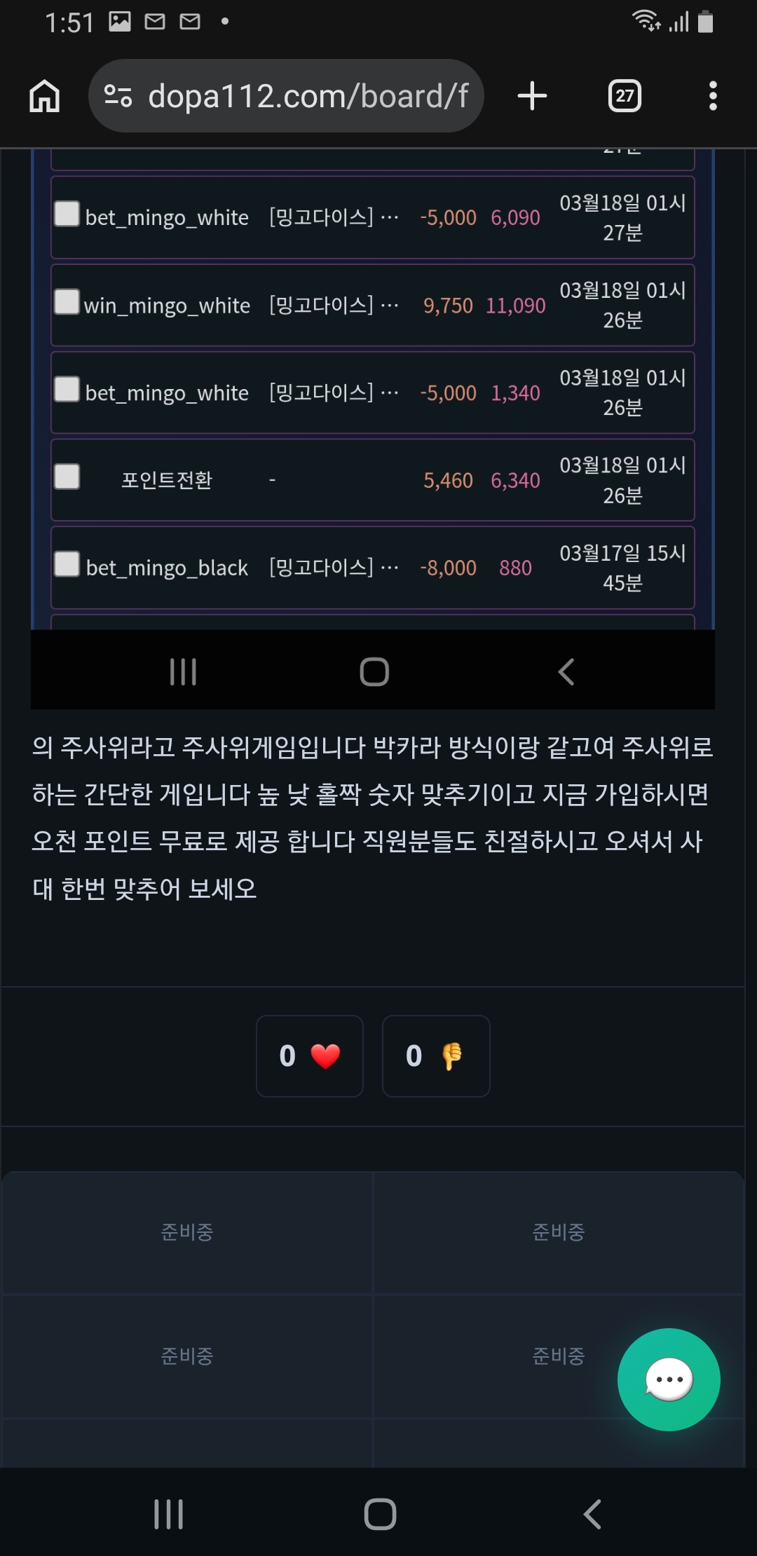모두의 주사위라고 주사위게임입니다 박카라 방식이랑 같고여 주사위로 하는 간단한 게입니다 높 낮 홀짝 숫자 맞추기이고 지금 가입하시면 오천 포인트 무료로 제공 합니다 직원분들도 친절하시고 오셔서 사대 한번 맞추어 보세오