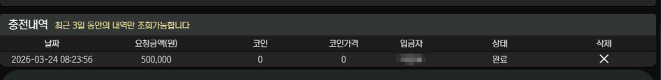 이전에 충전 한 건 더있는대 내역이 지워졌네여 이름은 익명으로 가렸습니다