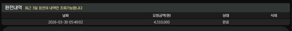 환전도 환전신청넣고 1분? 2분? 똥담하려고 불붙이기 전에 환전들어왔습니다
