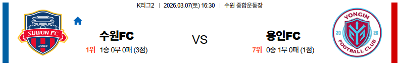 수원FC 대 용인 K리그2 03월07일 맞대결 생중계, 스포츠중계, 스포츠분석