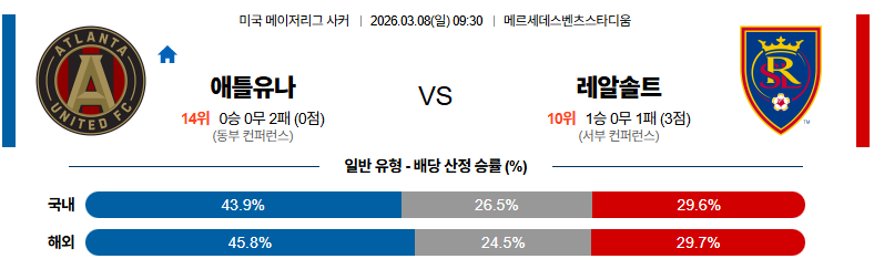 애틀랜타 대 솔트레이크 메이저리그사커 03월08일 맞대결 생중계, 스포츠중계, 스포츠분석