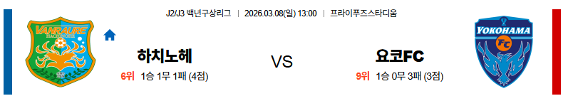 하치노헤 대 요코하마 J리그2 03월08일 맞대결 생중계, 스포츠중계, 스포츠분석