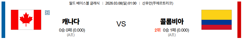 캐나다 대 콜롬비아 월드베이스볼클래식 03월08일 맞대결 생중계, 스포츠중계, 스포츠분석