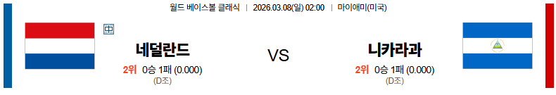 네덜란드 대 니카라과 월드베이스볼클래식 03월08일 맞대결 생중계, 스포츠중계, 스포츠분석