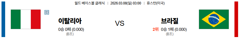 이탈리아 대 브라질 월드베이스볼클래식 03월08일 맞대결 생중계, 스포츠중계, 스포츠분석