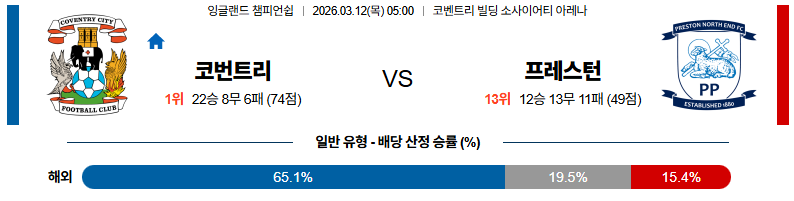 코번트리 대 프레스턴 잉글랜드챔피언쉽 03월12일 맞대결 생중계, 스포츠중계, 스포츠분석