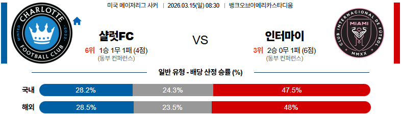 샬럿 대 인터마이애미 메이저리그사커 03월15일 맞대결 생중계, 스포츠중계, 스포츠분석
