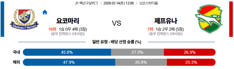 요코하마마리노스 대 제프유나이티드 J리그1 03월14일 맞대결 생중계, 스포츠중계, 스포츠분석