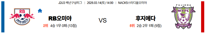 오미야 대 후지에다 J리그2 03월14일 맞대결 생중계, 스포츠중계, 스포츠분석