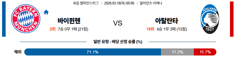 바이에른뮌헨 대 아탈란타 UEFA챔피언스리그 03월19일 맞대결 생중계, 스포츠중계, 스포츠분석