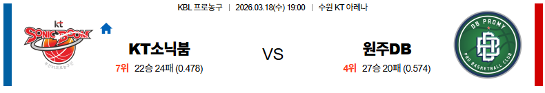 수원KT 대 원주DB KBL 03월18일 맞대결 생중계, 스포츠중계, 스포츠분석