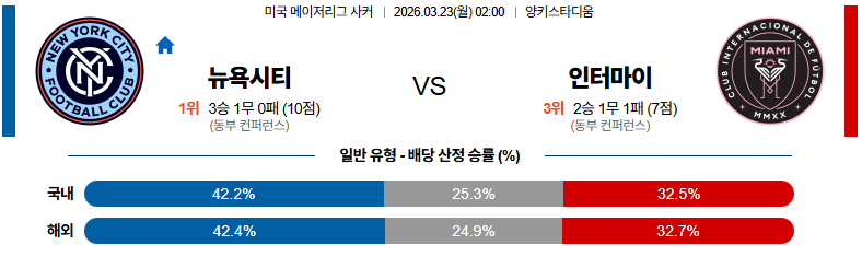 뉴욕시티 대 인터마이애미 MLS 03월23일 맞대결 생중계, 스포츠중계, 스포츠분석