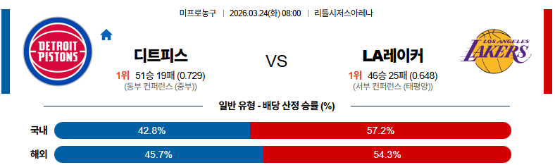 디트로이트 대 LA레이커스 NBA 03월24일 맞대결 생중계, 스포츠중계, 스포츠분석