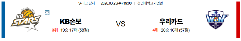 KB손해보험 대 우리카드 V리그 03월25일 맞대결 생중계, 스포츠중계, 스포츠분석
