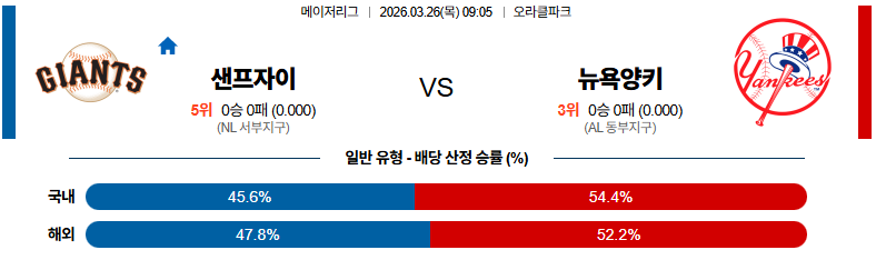 샌프란시스코 대 뉴욕양키스 MLB 03월26일 맞대결 생중계, 스포츠중계, 스포츠분석