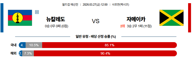뉴칼레도니아 대 자메이카 월드컵예선전 03월27일 맞대결 생중계, 스포츠중계, 스포츠분석