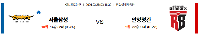 서울삼성 대 안양정관장 KBL 03월28일 맞대결 생중계, 스포츠중계, 스포츠분석