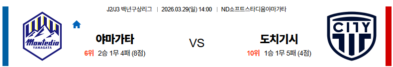 도치기시티 대 야마가타 J리그2 03월29일 맞대결 생중계, 스포츠중계, 스포츠분석