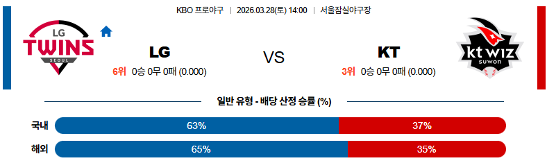 LG 대 KT KBO 03월28일 맞대결 생중계, 스포츠중계, 스포츠분석