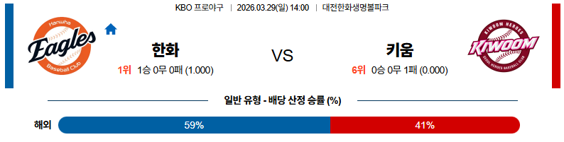 한화 대 키움 KBO 03월29일 맞대결 생중계, 스포츠중계, 스포츠분석
