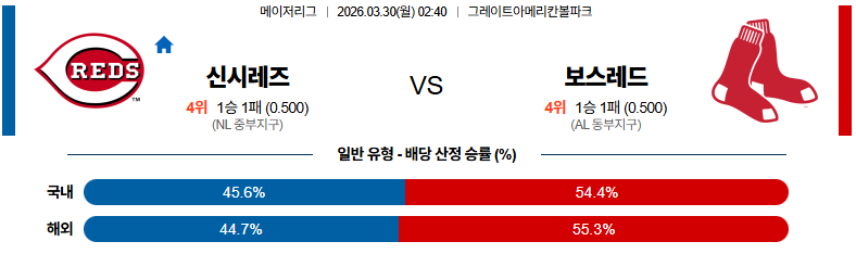 신시내티 대 보스턴 MLB 03월30일 맞대결 생중계, 스포츠중계, 스포츠분석