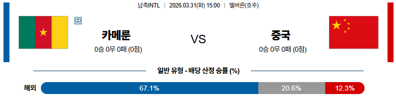 카메룬 대 중국 국제친선경기 03월31일 맞대결 생중계, 스포츠중계, 스포츠분석
