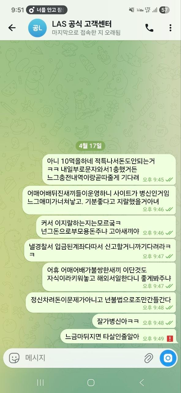 차단 및 텔레그램 고객센터까지 차단 후 먹튀 당함.