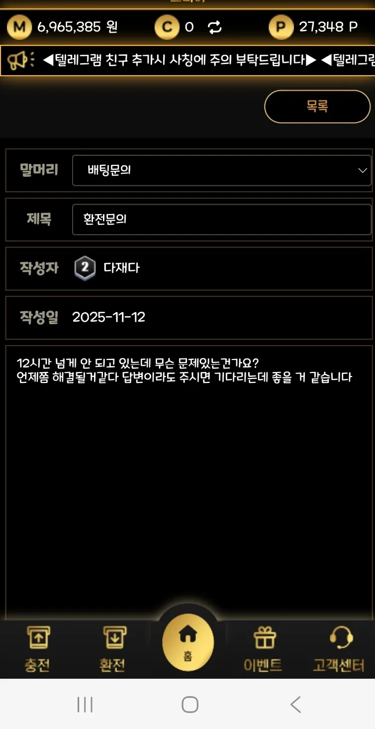 나오다가 바카라로 696만 환전신청 하니 취소시키고