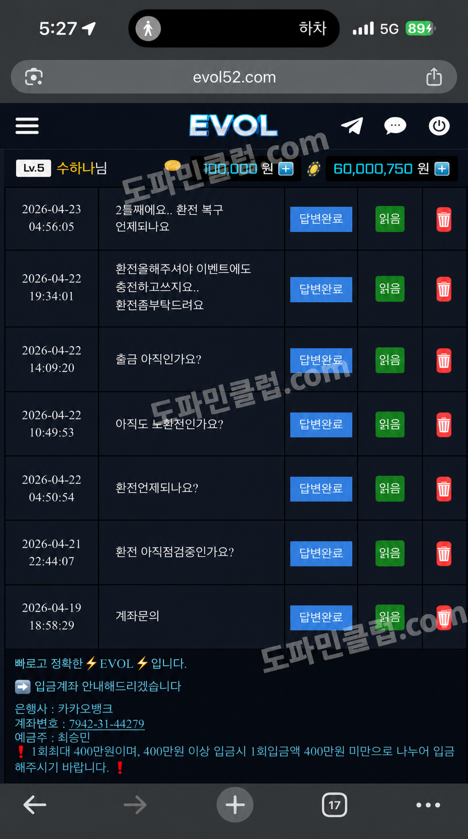 아~~~먹튀인가 어느정도는 환전해주더니 갑자기